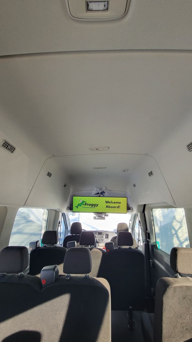 Froggy Transportation is making fleet updates! We aim to provide the best quality service with the best quality equipment. In order to invest in future service, we will be retiring our big green bus. The green bus has served us well during our first year in business and will continue to serve its next owner. While it saddens us to part ways with our iconic green bus, we are really excited to introduce our brand new 2025 Ford Transit bus! It will feature smoother rides, more safety systems, large decrease in carbon emissions, and modern comforts such as charging ports. This bus is so new, it hasn't been wrapped in green yet!